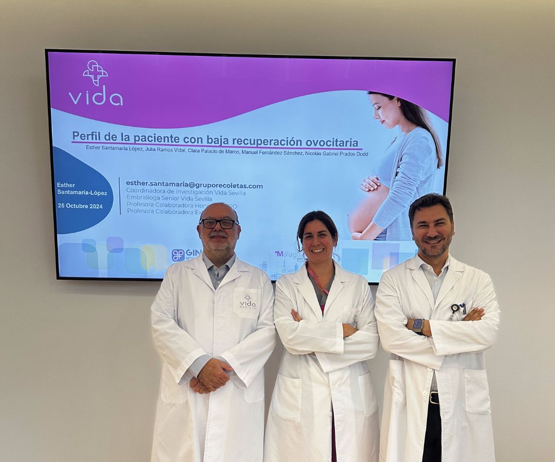 Nuestra embrióloga y Coordinadora de Investigación en VIDA Sevilla, Esther Santamaría, presentó la Comunicación Oral titulada “Perfil de la paciente con baja recuperación ovocitaria”, un estudio que forma parte de su tesis doctoral. Este trabajo ha sido dirigido por nuestro Director Científico y Director de VIDA Sevilla, Manuel Fernández, junto con Nicolás Prados, Coordinador de nuestros laboratorios.